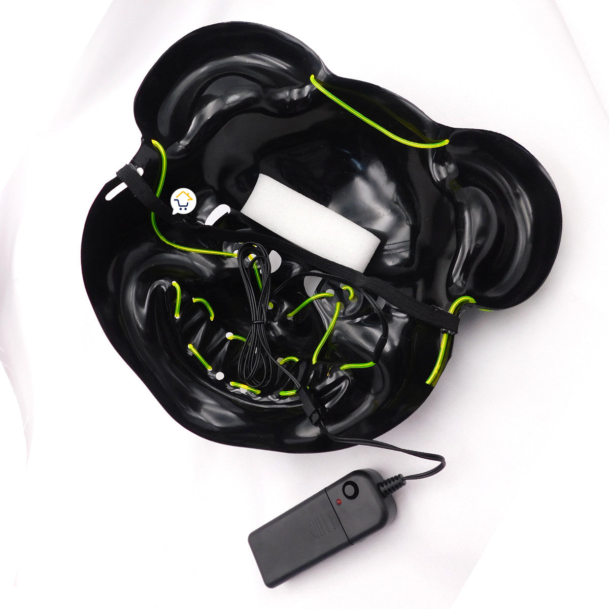 Ilumina la noche y roba miradas con esta máscara LED de neón. Diseño impactante, 3 modos de luz y control con clip para llevar la batería con comodidad. Perfecta para Halloween, fiestas, discotecas y cosplay: llama la atención sin complicarte con disfraces completos.